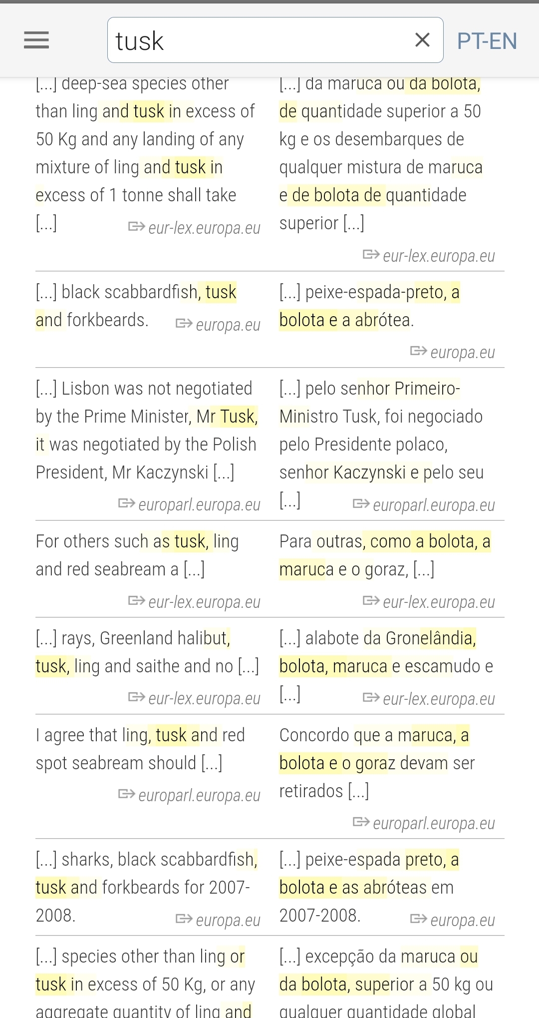 I suppose it could have been worse. Donald Tusk features heavily in those same EU documents and pops up from time to time in the Linguee results, usually without translation, although in at least one “Prime Minister Tusk” is translated as “o Primeiro Ministro turco” which is a massive cock-up if ever I saw one.
