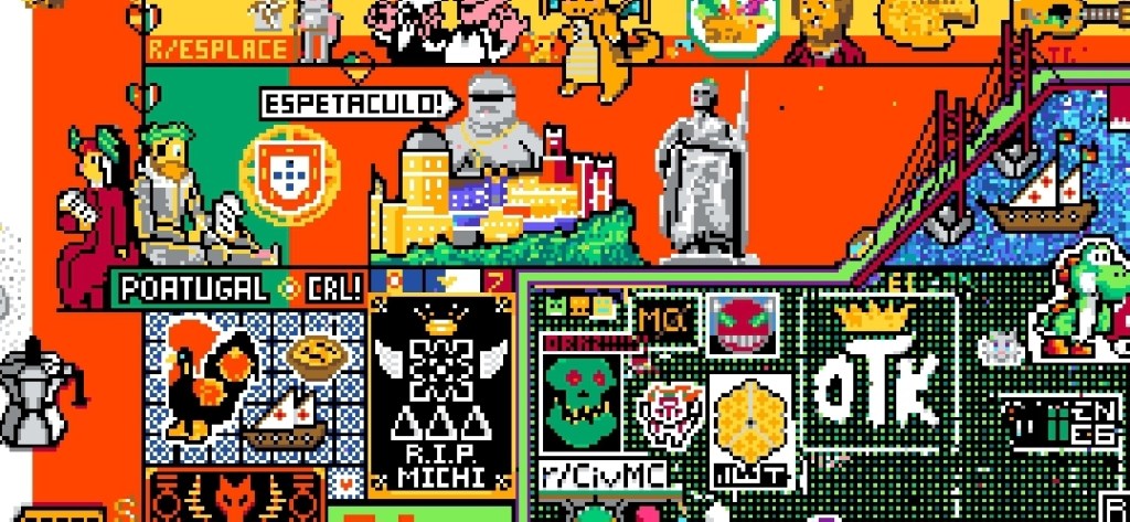 Just popped over to the r/place subreddit, which is a sort of giant collaborative artwork being created by millions of people, and I noticed quite near the middle there are a lot of Portuguese people carving out a little niche for themselves. I strongly approve.