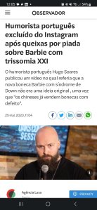 “A Mattel lançou uma Barbie com Trissomia 21, uma edição especial. Não é uma ideia original, toda a gente sabe que os chineses já vendem bonecas com defeito”