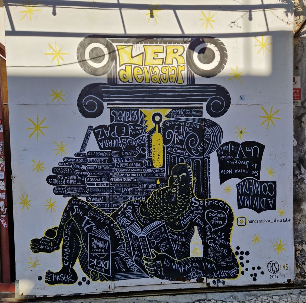 Deparámos com a loja durante a nossa primeira estadia em Lisboa, por acaso, há 8 anos, no ano de lamentação**, 2016. Estávamos hospedados num AirB&B perto da Lx Factory. Mas naquela altura não estava capaz de ler livros portugueses portanto não apreciei a sua glória.