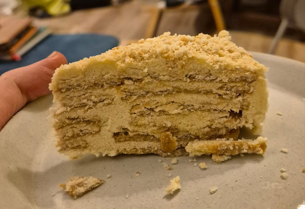 Caro leitor, tens pacientado os meus textos dos últimos dias sobre ser estudante e sobre o diário deste tipo Garrett. Antes de continuarmos, sugiro que façamos uma pausa para apreciar esta foto do magnífica bolo de bolacha feito pela minha esposa. Foi a sobremesa de hoje e amanhã ela abastecerá a nossa filha de fatias do bolo antes da viagem na sua terra, de comboio, de volta para Dundee.