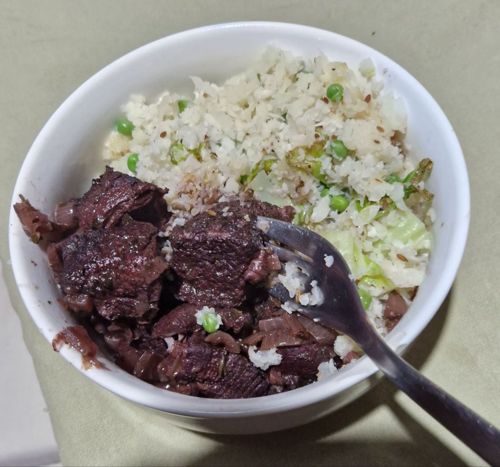 A segunda tentativa de fazer chanfana correu mil vezes melhor do que a primeira. A cozinha não acabou em chamas, ninguém morreu e enfim a carne era suculenta e deliciosa. Arroz de couve-flor não é o acompanhamento tradicional deste prato, mas não me importa: era preciso comer a couve-flor antes de ela ficar podre.