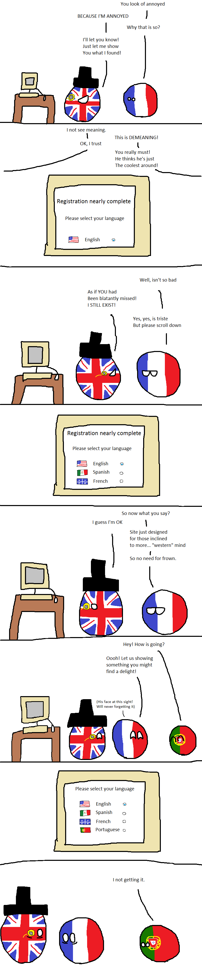 I’m really enjoying it. I grew up on Every Boy’s Handbook, before the Internet turned our brains to mush, and this sort of thing – flags and maps and all that boyscout stuff – seems like Proper Knowledge, and I’m glad there are apps that help me banish my ignorance. The fact that it’s building my Portuguese vocabulary is certainly a bonus.