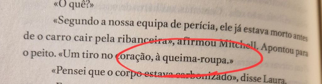 Fiquei intrigado por esta pequena frase. Se o homem levou um tiro no coração, quem se importa se a roupa também foi queimada?